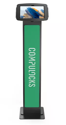 Brand-able Floor Stand is an enclosure stand with space allowing you to put a custom message or branded panel making it a great display solution for stand alone environments.