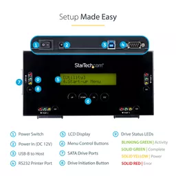 StarTech.com 4 Bay SSD/HDD Hard Drive Eraser - 2.5" & 3.5" SATA - Hostless Standalone Secure Erase External Disk Sanitizer - 9 Erase Modes - RS232 Printer Port - NIST/DOD & TAA Compliant